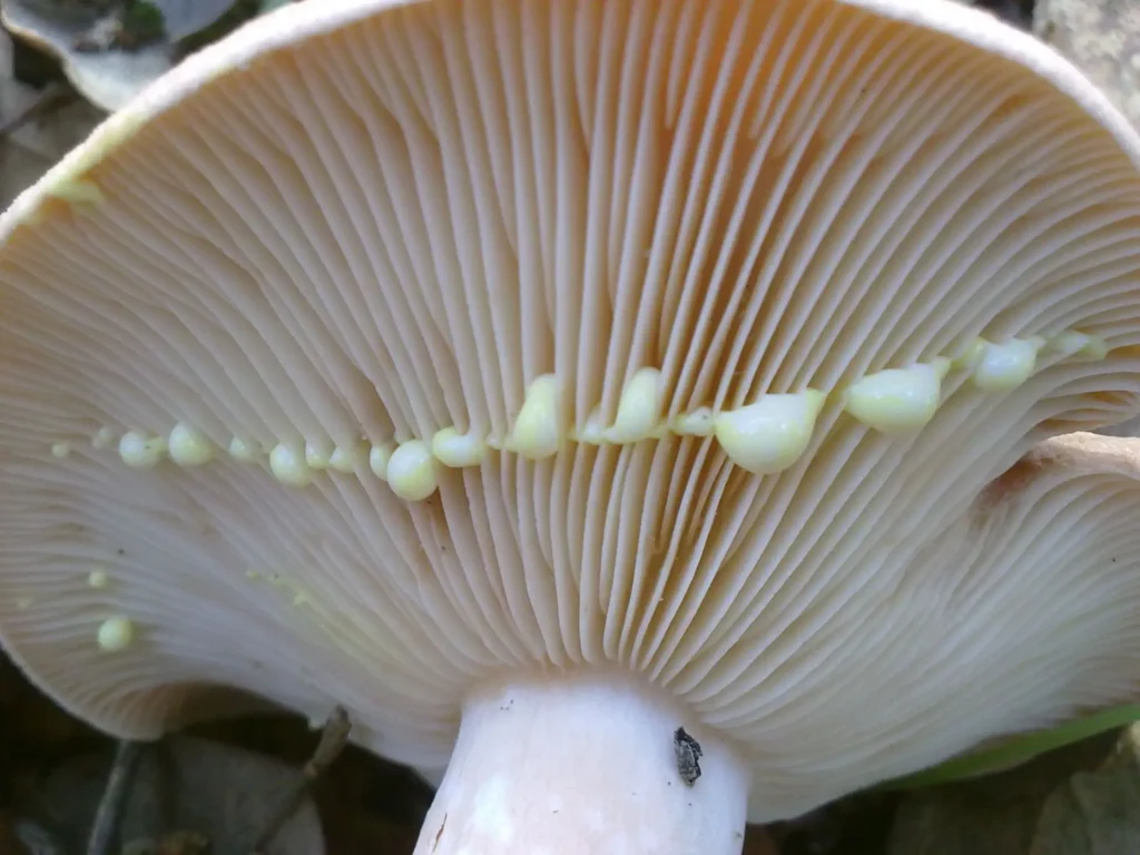 - FALSO NÍSCALO (Tóxico – L. torminosus): Suelta un látex de color BLANCO LECHE. Este látex blanco es inmutable, no cambia de color al contacto con el aire.